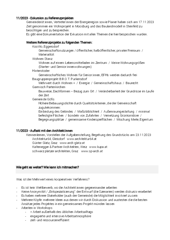 Das Leader-Projekt "Kooperationsverfahren für neue Wohnformen im ländlichen Raum" - Neues Wohnen am Reisergrund ist abgeschlossen.