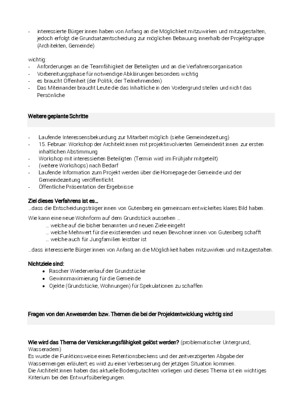 Die weiteren Schritte erfolgen nach Beratung im Gemeinderat in Abstimmung mit einem möglichen Bauträger.